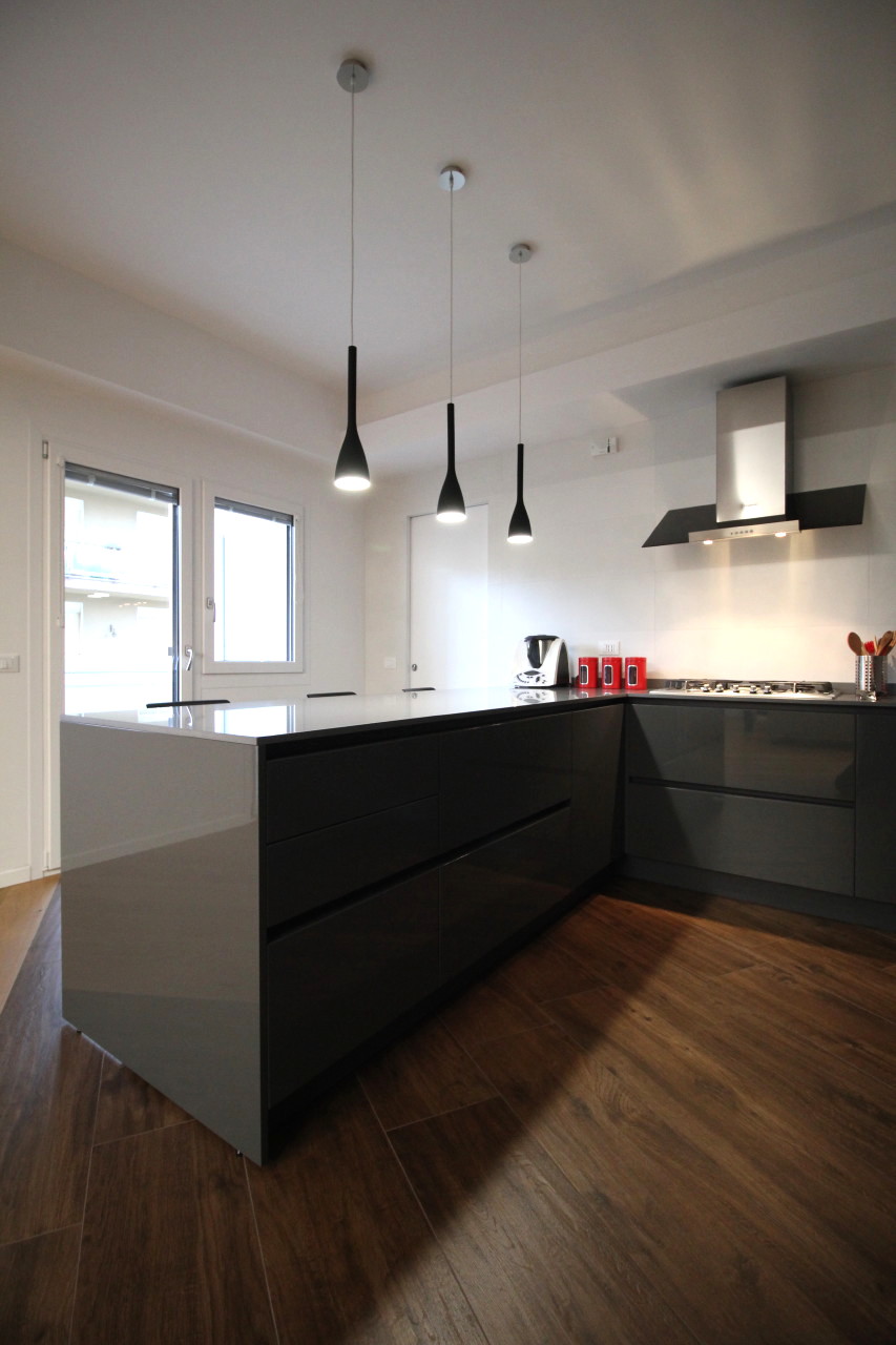Questo mi ha sempre spinto a realizzare la porta di comunicazione tra cucina e soggiorno con ante scorrevoli molto grandi, così da poterle tenere spesso aperte, a meno di una reale necessità di separazione dovuta ad una cottura particolarmente odorosa o ad una situazione di disordine che si preferisce non vedere o no far vedere ai propri ospiti.
